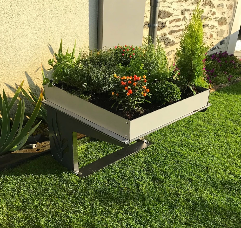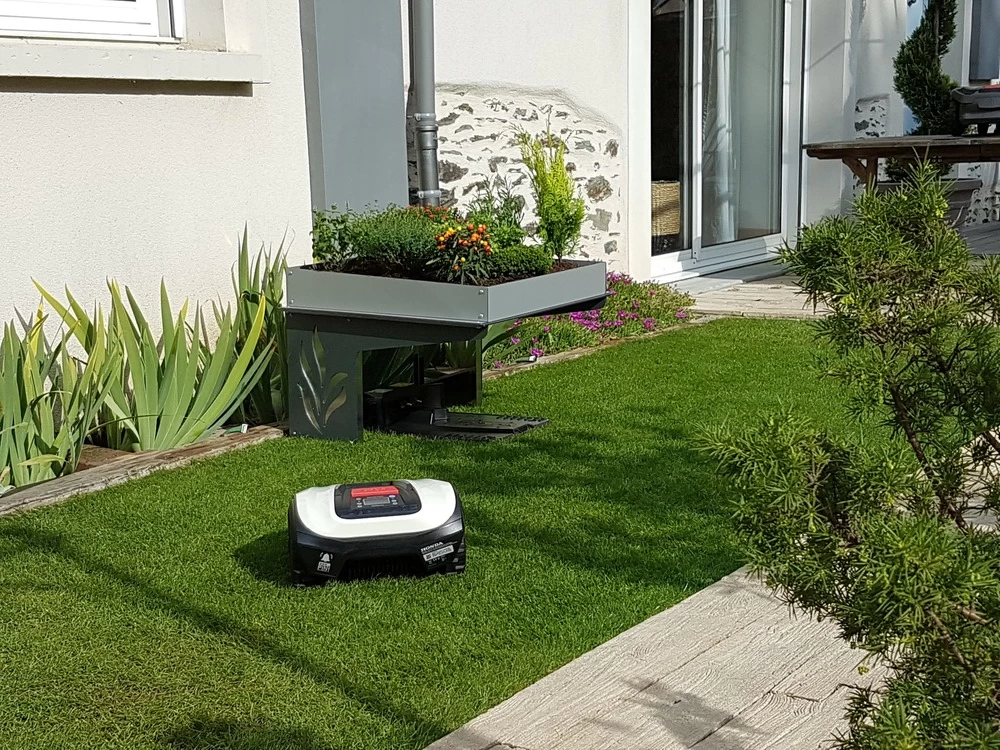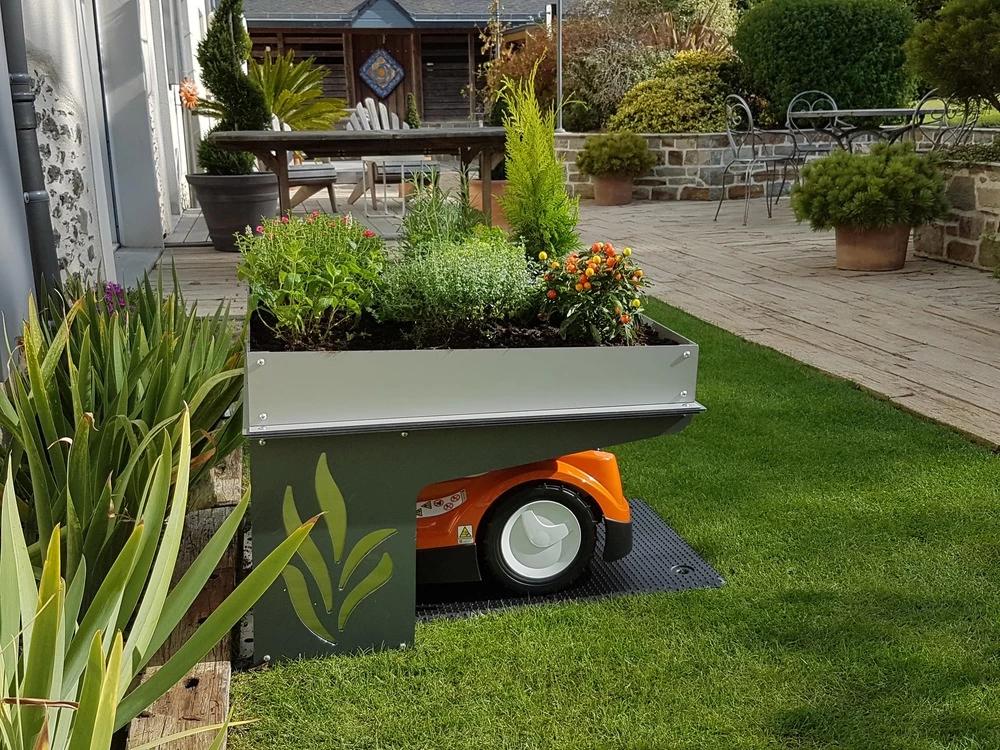 Le Robot Protect Life permet de protĂ©ger son robot tondeuse efficacement des intempĂ©ries et d’avoir une jardinière en hauteur afin de faire pousser plantes dĂ©coratives et aromatiques, banzai…