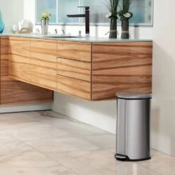 La poubelle à pédale grace argentée mate de la marque eko est une poubelle triangulaire unique avec un seau intérieur en plastique de 35 l. Cette poubelle à pédale est fabriquée en acier inoxydable brossé et possède un revêtement ingénieux résistant aux empreintes digitales. C’est une solution de confinement des déchets idéale pour toute cuisine moderne. Le bac à déchets est équipé d’un couvercle à fermeture silencieuse et s’adapte parfaitement au mur ou dans un coin avec son look avant-gardiste !