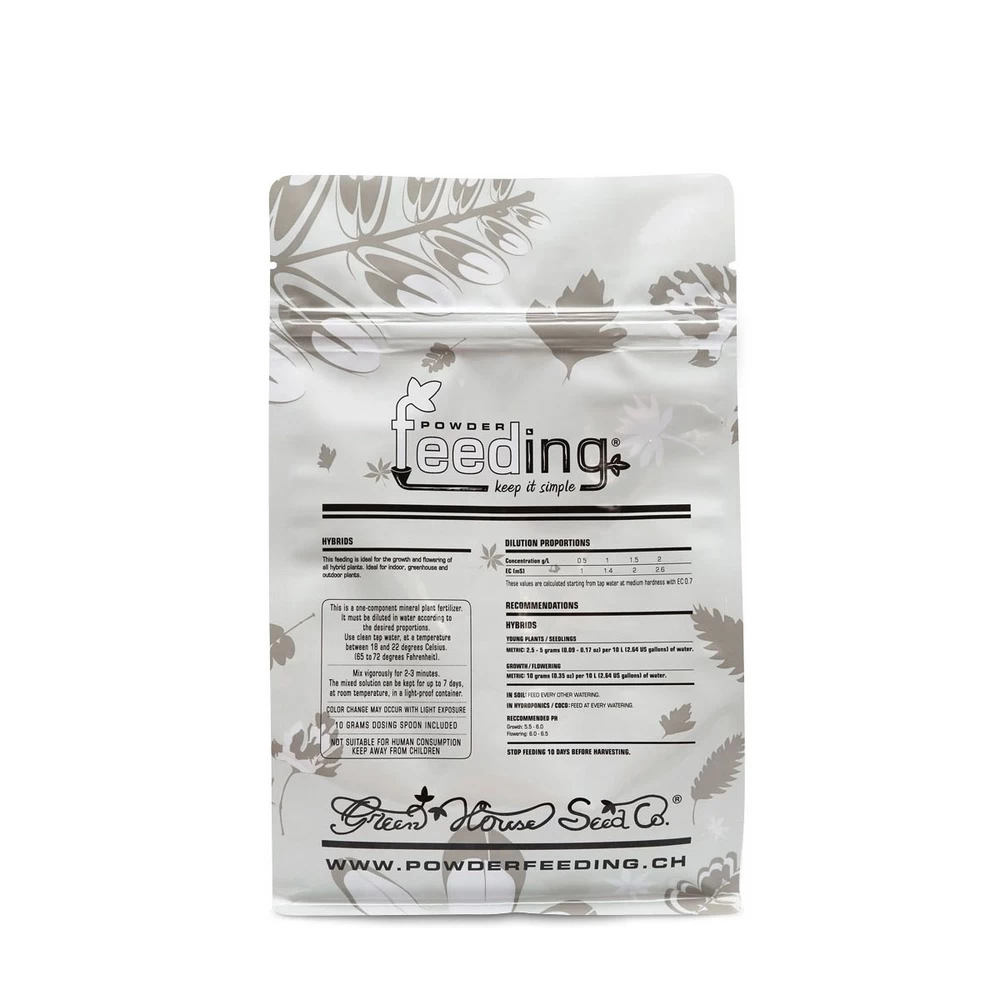 powder feeding hybrids en sachet de 1 kilo est un engrais minĂ©ral qui s’utilisera avec tous les types de vĂ©gĂ©taux en substrat terre, fibres de coco, culture hydroponique et aĂ©roponique. Engrais all-in-one green house pour toute la croissance et la floraison.