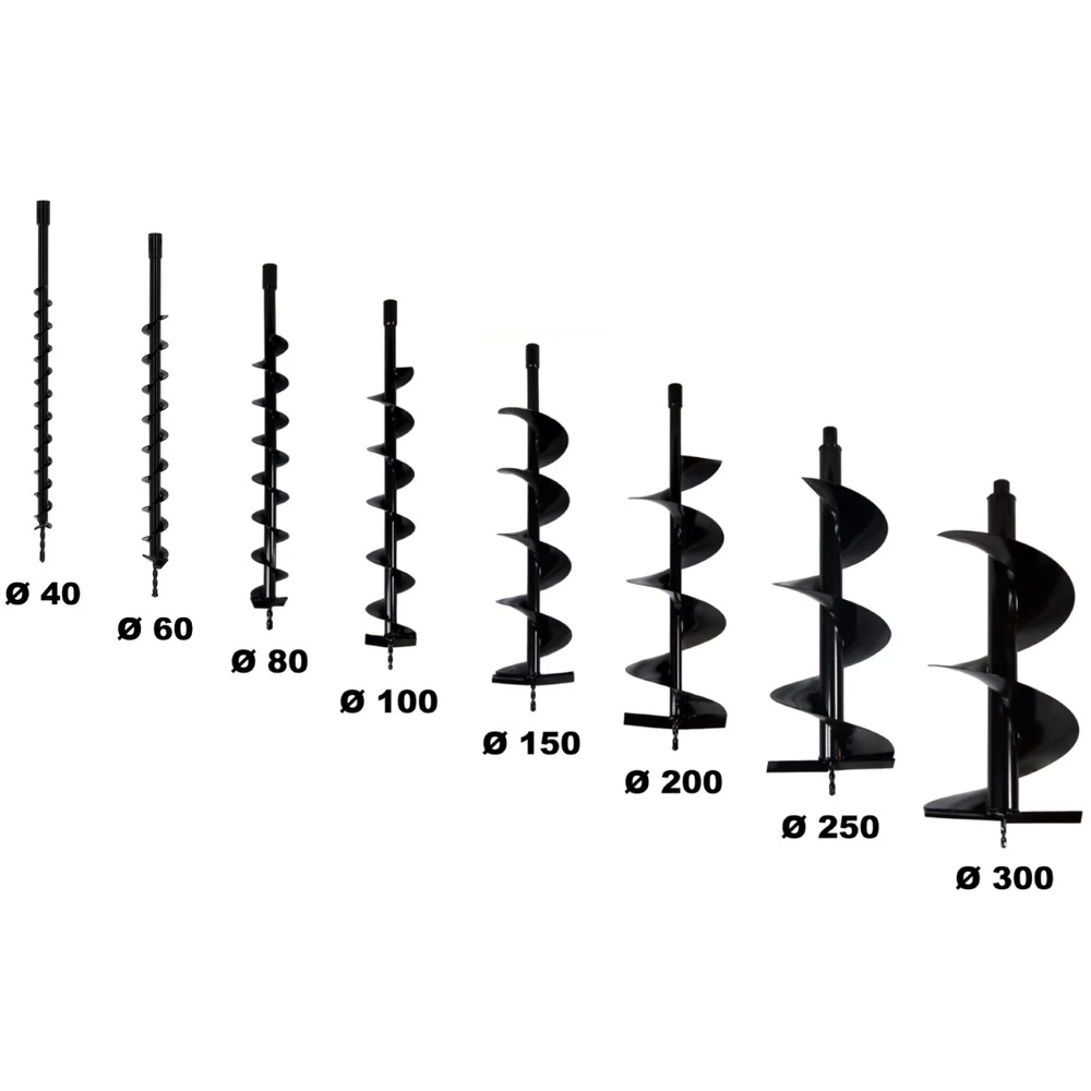 – mèches de diamètre 40, 60, 80, 100, 150, 200, 250 et 300 mm