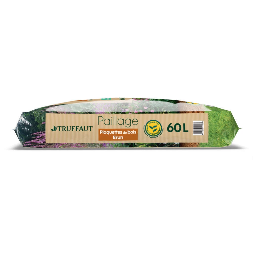 Le bois Ă©tant peu altĂ©rable, ce paillage est dotĂ© d’une très grande longĂ©vitĂ© avec une durĂ©e de vie supĂ©rieure Ă 3 ans. Cette longĂ©vitĂ© et son cotĂ© esthĂ©tique rendent la plaquette idĂ©ale pour le paillage de masse des arbres, arbustes, rosiers et jeunes plants mais aussi des allĂ©es et bordures. Sa stabilitĂ© et sa densitĂ© permettent une bonne tenue au sol et limitent nettement l’Ă©rosion et la levĂ©e des mauvaises herbes. Le bois utilisĂ© est prĂ©levĂ© dans des zones forestières contrĂ´lĂ©es et certifiĂ©es PEFC pour rĂ©pondre aux critères de gestion durable de la forĂŞt. La plaquette n’a subi aucun ajout ni traitement chimique.
