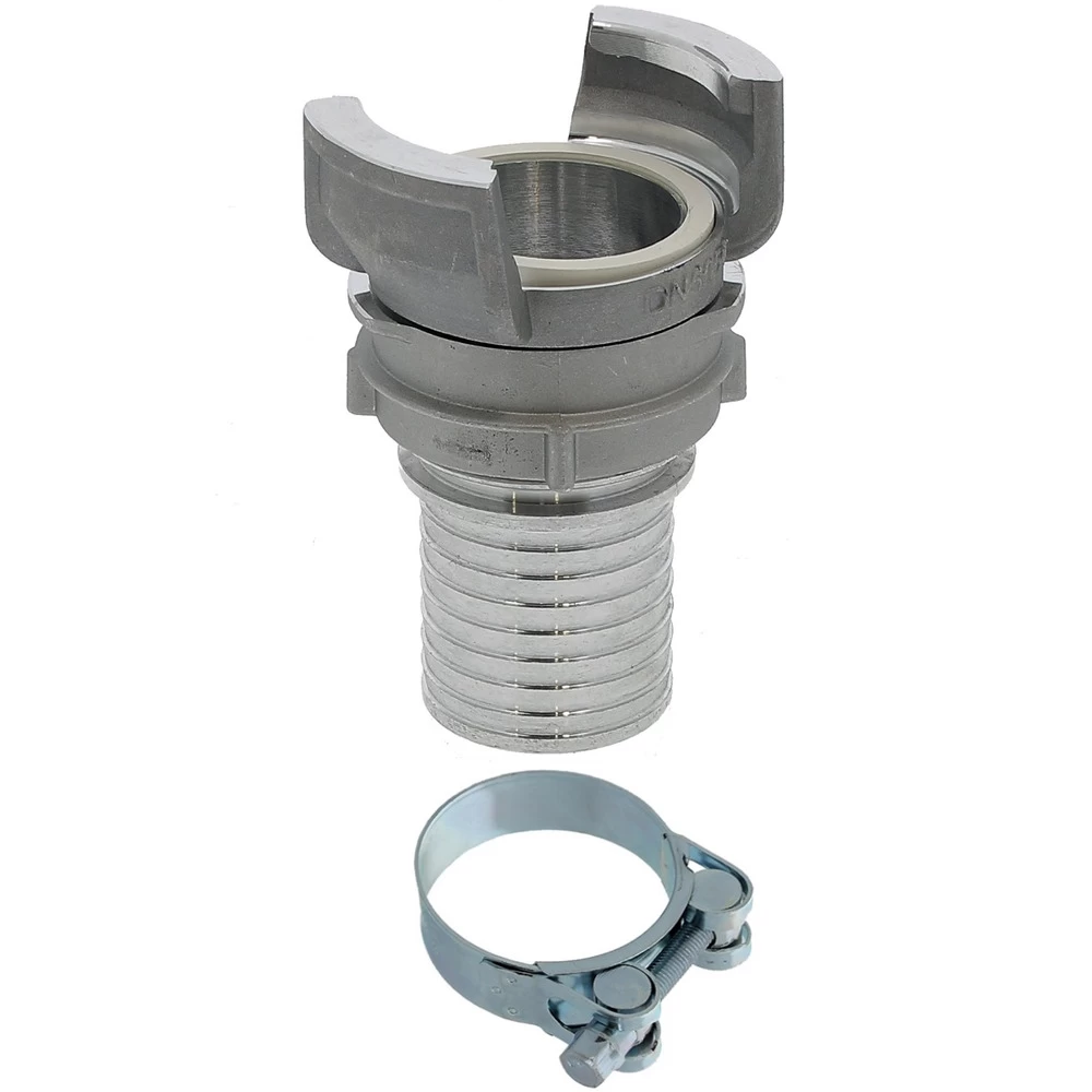 Le raccord symétrique guillemin (également appelé raccord pompier) à douille annelée est conçu pour être fixé sur des tuyaux. Il peut être utilisé pour l’aspiration et le refoulement dans différents domaines : eau, irrigation, produits chimiques et pétroliers, pulvérulents, engrais liquides. Livré avec un collier à tourillon pour un serrage optimal des tuyaux